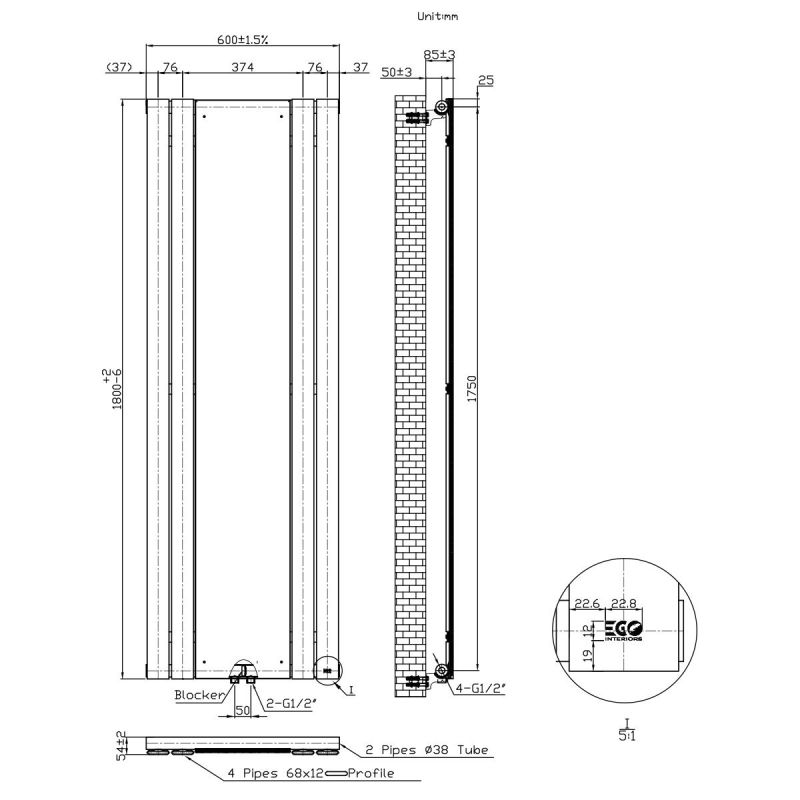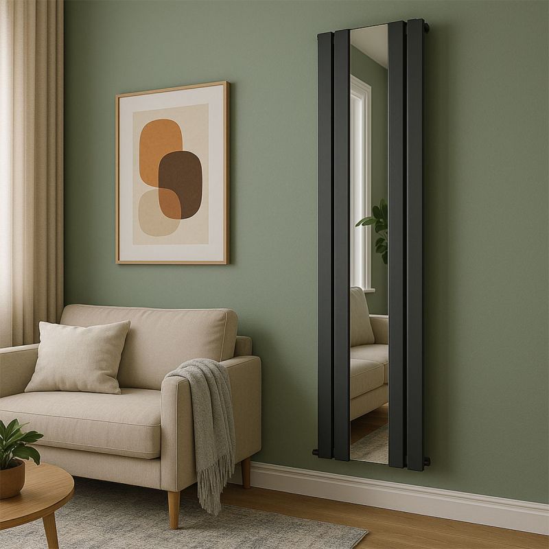 Multifunktionales Design – verbindet die Eleganz eines vertikalen Spiegels mit der Funktion eines Heizkörpers, bringt Helligkeit und Tiefe in den Raum, spart Platz und sorgt mit 593 Watt für angenehme Wärme.