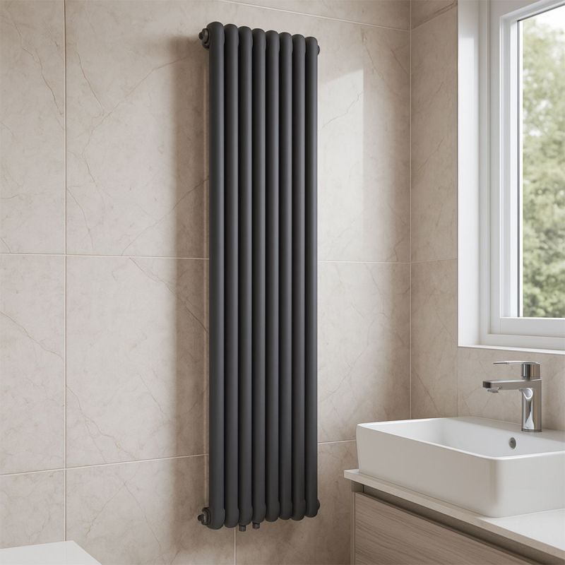 Design in modernem Stil – Die 7 vertikalen Röhrenelemente verbinden klassische Eleganz mit zeitgemäßer Ästhetik. Das schlanke, hohe Format eignet sich ideal für Räume mit begrenzter Bodenfläche, sorgt für effiziente vertikale Wärmeverteilung.