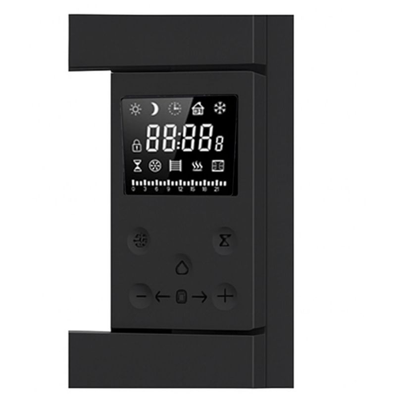 Mit robuster Struktur und mattem Schwarz wird Reina zu einem dekorativen Element in modernen Bädern. Die Schutzart IP44 gewährleistet sicheren Betrieb in feuchten Räumen, während die umfangreiche Funktionalität Komfort, Sicherheit und ansprechende Ästhetik in einem Gerät vereint.