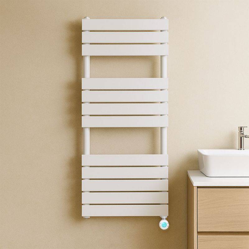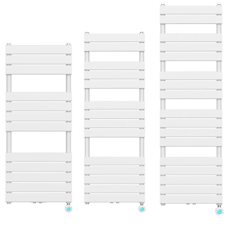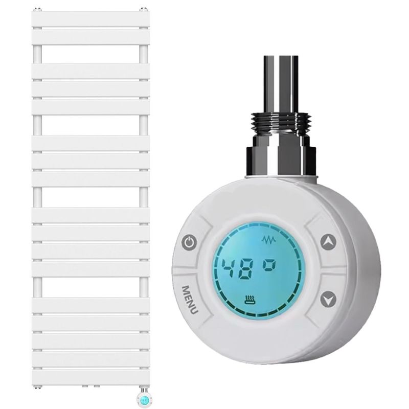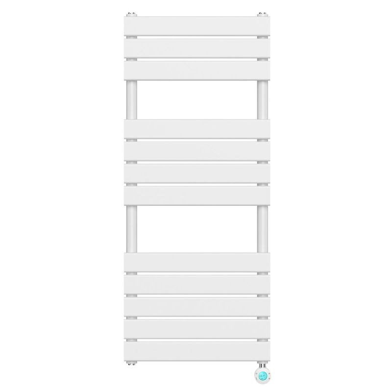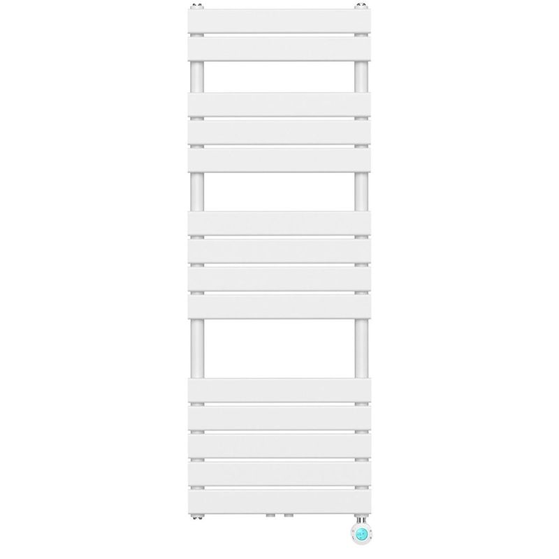 Elektrischer Heizkörper mit LCD-Thermostat, Wochenprogrammierung, Timer, Handtuchhalter, 120-140-160x50 cm, Weiß, Nadir