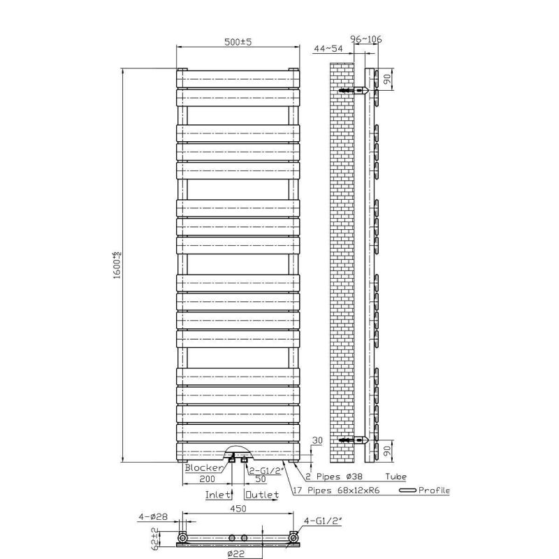 Heizkörper, Handtuchheizkörper aus Stahl, Mattschwarz, Größe: 140–160x50 cm, Nadir