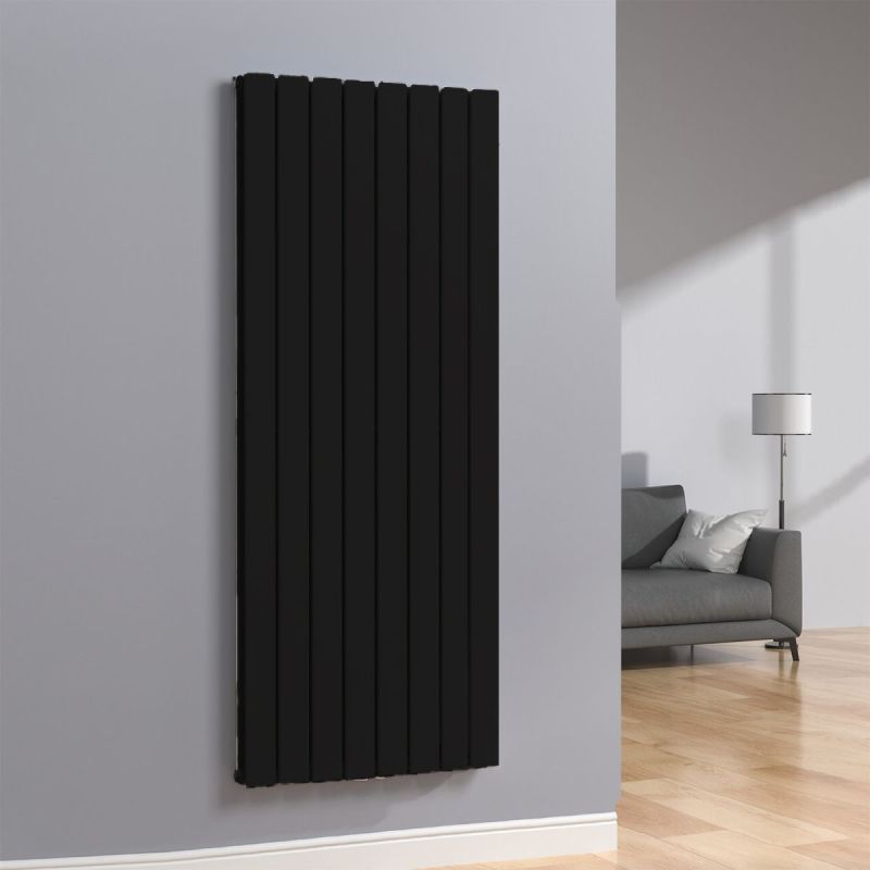 Doppel-Vertikalheizkörper, Stahl, Mattschwarz, Größe: 180x61 cm, Kalifa