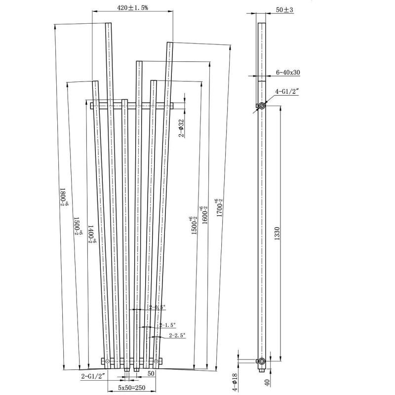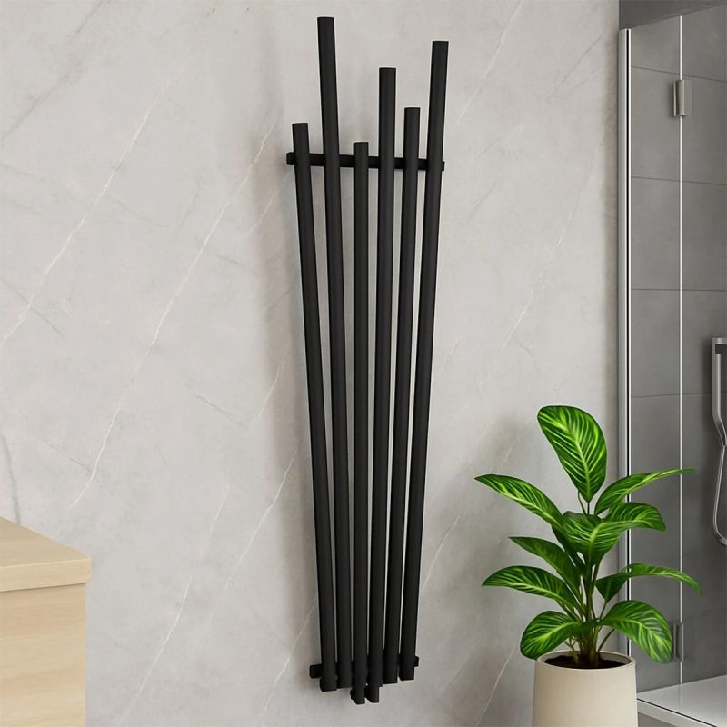Heizkörper, Mattschwarz, 180x42 cm, 687 W, 6 Elemente, Stahl, Modernes Design, Enes