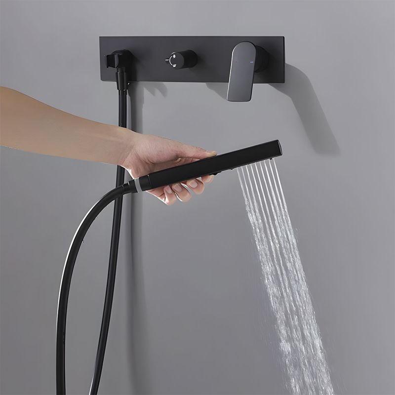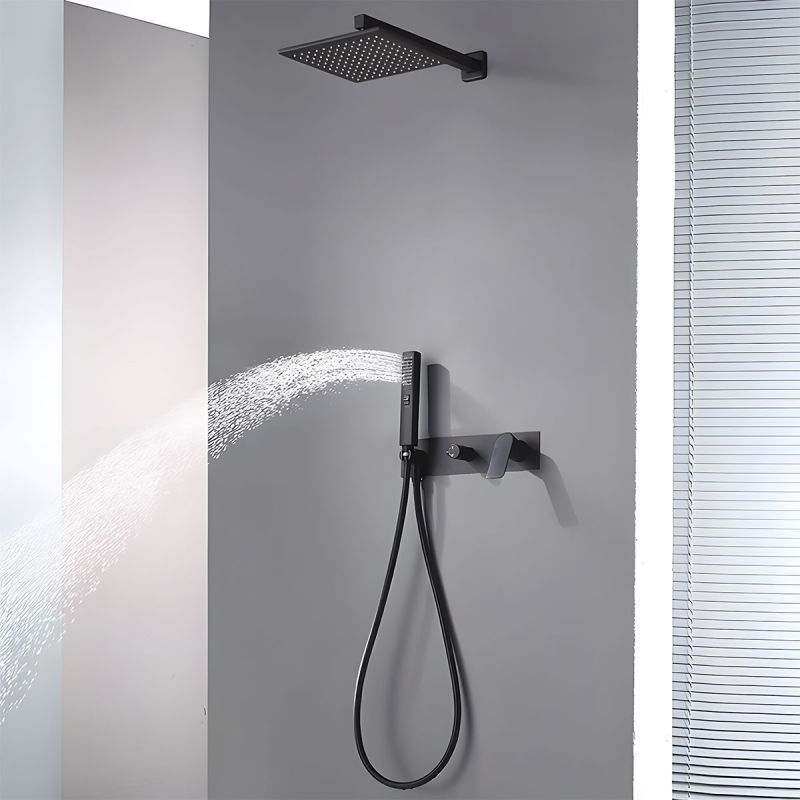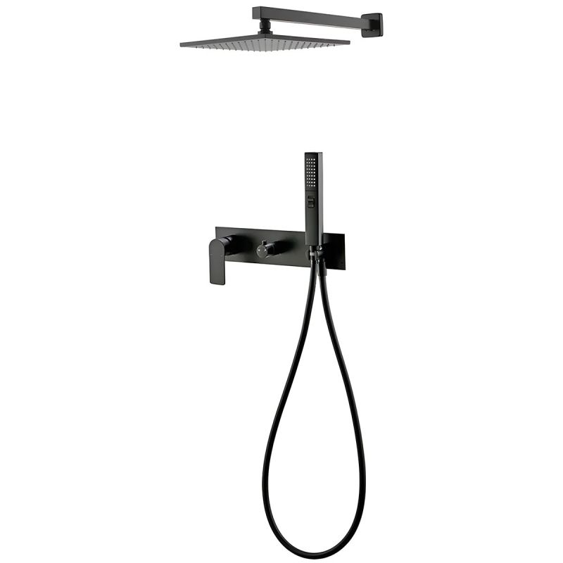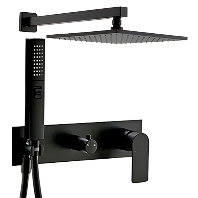 Sein minimalistisches Design wird durch die wandbündige Montage unterstützt, die dem Badezimmer ein aufgeräumtes und anspruchsvolles Erscheinungsbild verleiht, indem sichtbare Elemente und visuelle Unordnung eliminiert werden. Die eingebaute Armatur ist vollständig verborgen, es sind nur der Bedienhebel, die Handbrause und der feste Duschkopf sichtbar – alle makellos in mattem Schwarz ausgeführt, ein raffinierter, trendiger Farbton, der sich leicht kombinieren lässt.