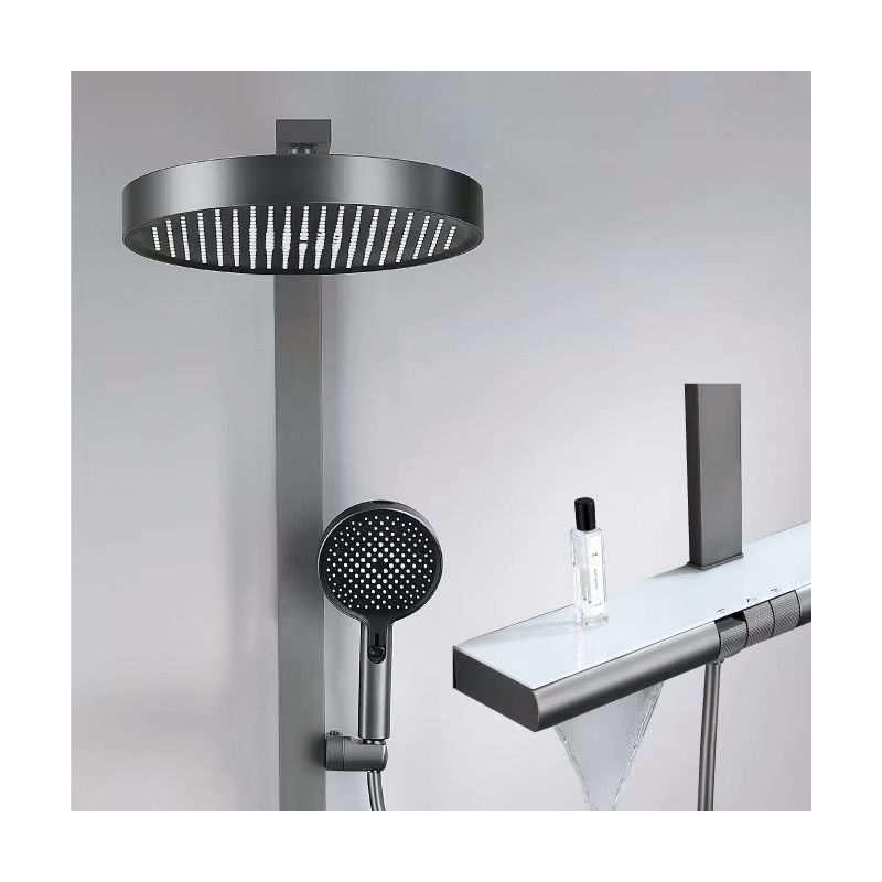 Der Körper des Systems besteht aus korrosionsbeständigem Edelstahl und garantiert eine lange Lebensdauer sowie ein dauerhaft makelloses Erscheinungsbild. Das mattschwarze Finish schützt die Oberfläche vor täglicher Abnutzung und verleiht dem gesamten Badezimmer eine raffinierte Note. Das Frontpaneel aus Sicherheitsglas mit glatter, eleganter Textur ist leicht zu reinigen und bietet zusätzlichen Stil und Sicherheit.