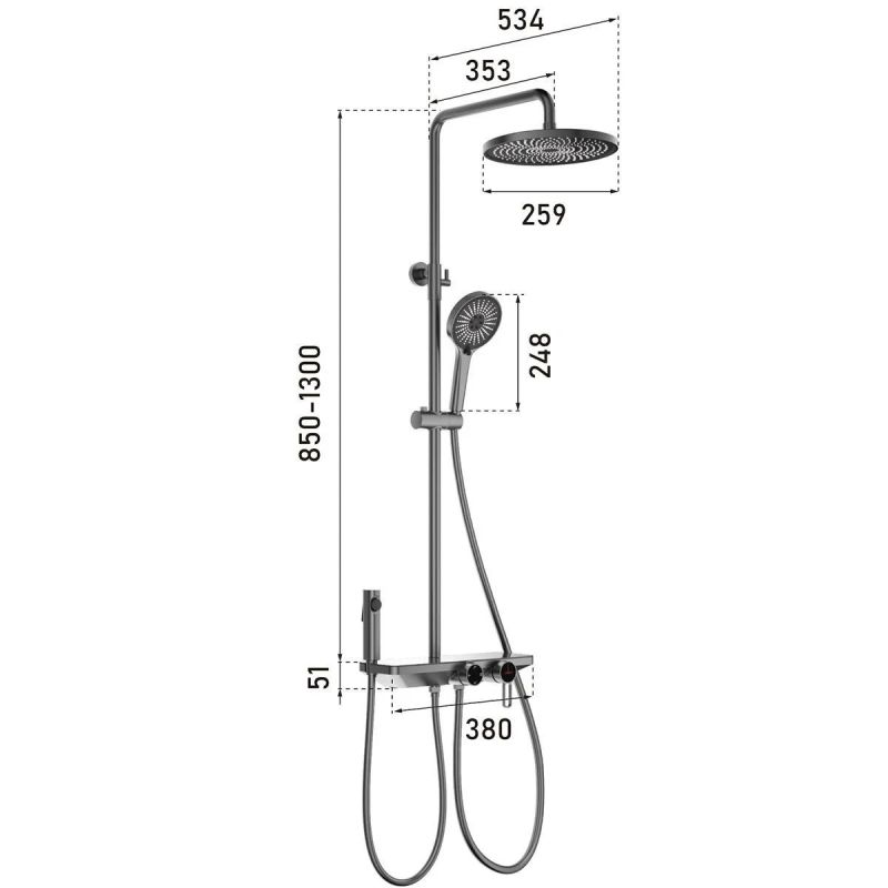 Duschsystem und Badewanne mit 2 Handbrausen, 3 Funktionen, Wandmontage, Edelstahl, Mattschwarz, Eleganza
