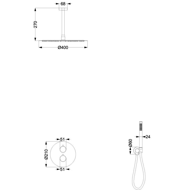 Das Apolo-System ist für die Deckenmontage konzipiert und bietet so ein minimalistisches, klares Erscheinungsbild – ideal, um den Raum optimal zu nutzen und eine luftige, entspannte Atmosphäre zu schaffen. Der Regenduschkopf mit großzügigen Maßen von 40x40 cm bedeckt den gesamten Körper und sorgt für ein echtes Spa-Erlebnis. Zusätzlich ergänzt die im Set enthaltene Handbrause das System perfekt und bietet Flexibilität und volle Kontrolle.
