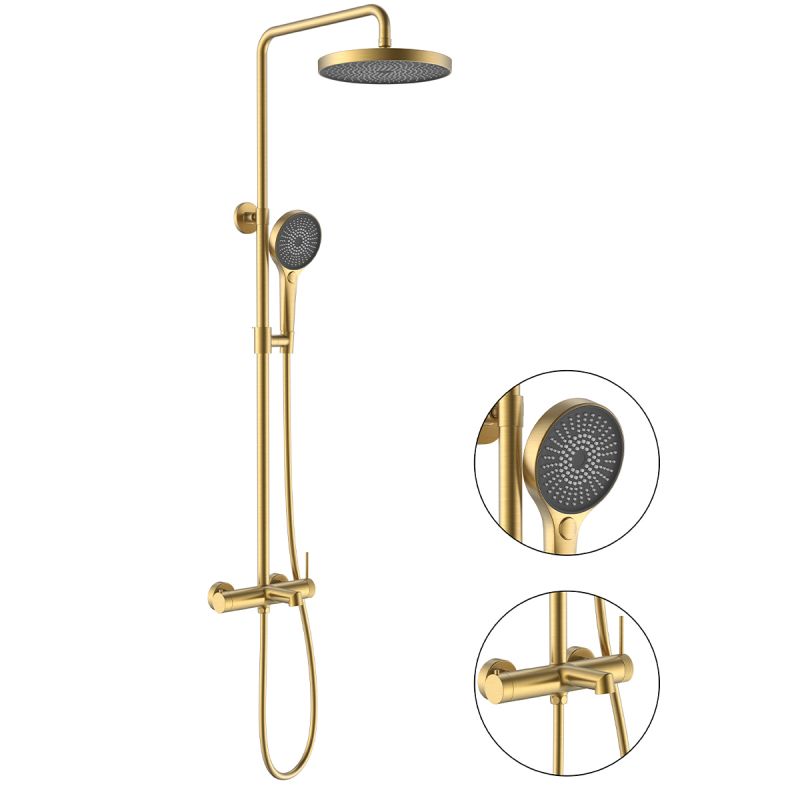 Duschsystem, Badewannenarmatur, 3 Funktionen, Wandmontage, Auriu Mat, Apolo
