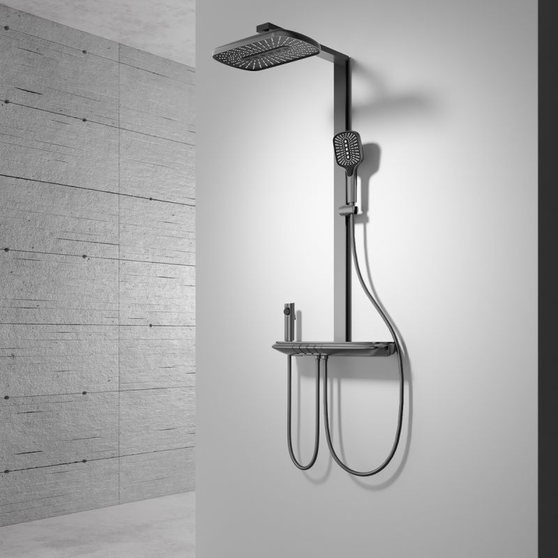 - Integriertes Ablagefach: Das System verfügt über ein großzügiges Ablagefach, das ideal für Shampoo, Duschgel und andere Pflegeprodukte ist. Aus feuchtigkeitsbeständigen Materialien gefertigt, ist es leicht zu reinigen und behält seine elegante Optik bei.