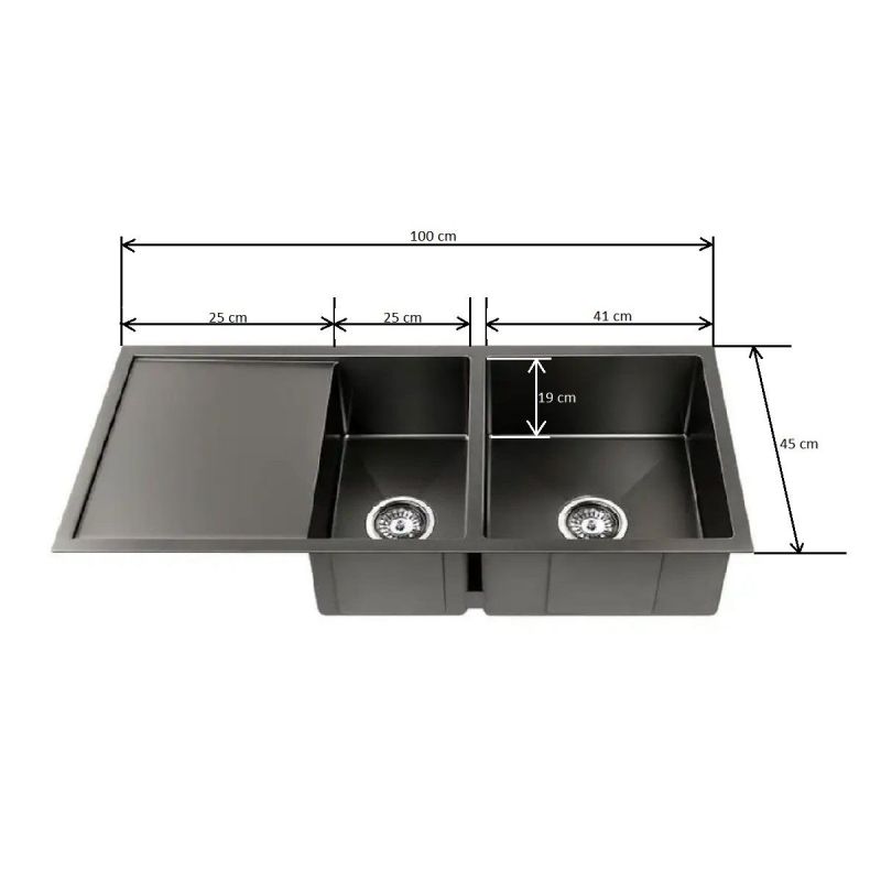 Elegantes und funktionales Design: Mit Maßen von 100x45 cm und einer Tiefe von 19 cm fügt sich die Vania Spüle nahtlos in jede moderne Küche ein. Das X-Flume-Design garantiert ein optimales Abfließen des Wassers. Umweltfreundliche Anti-Kondens-Beschichtung sowie integrierte Geräuschdämpfer bieten mehr Ruhe und Komfort in der Küche.