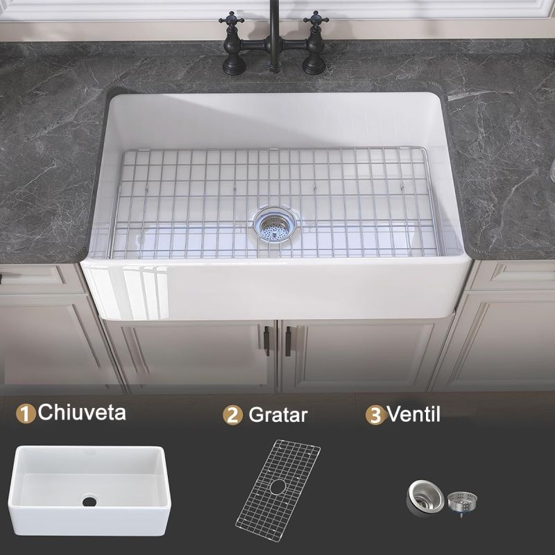 Hergestellt aus hochwertigen Materialien, ist diese Spüle langlebig und robust. Durch das Brennen in unseren Öfen bei Temperaturen von bis zu 1093,333 °C wird FireClay zum haltbarsten Material, das heute in Küchen verwendet wird. Dadurch widersteht es extremen Temperaturen von Töpfen und Pfannen.