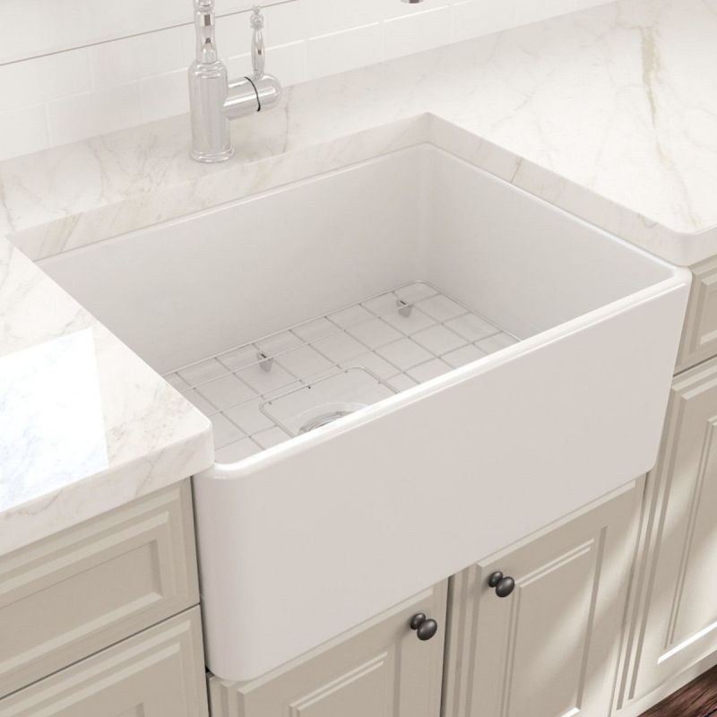 Hergestellt aus hochwertigen Materialien, ist diese Spüle langlebig und robust. Durch das Brennen in unseren Öfen bei Temperaturen von bis zu 1093,333 °C wird FireClay zum haltbarsten Material, das heute in Küchen verwendet wird. Dadurch widersteht es extremen Temperaturen von Töpfen und Pfannen.