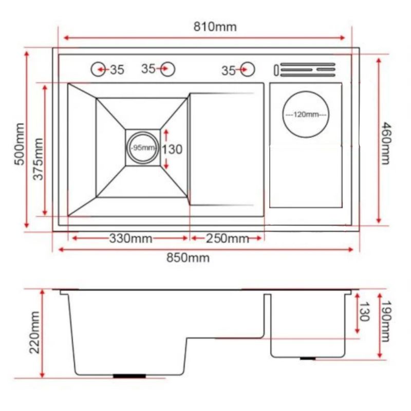 Großzügige Abmessungen: Mit einer geräumigen Oberfläche von 85x50 cm bietet sie reichlich Platz zum Spülen.