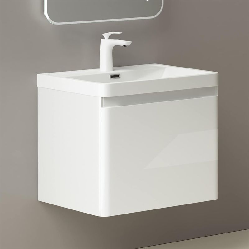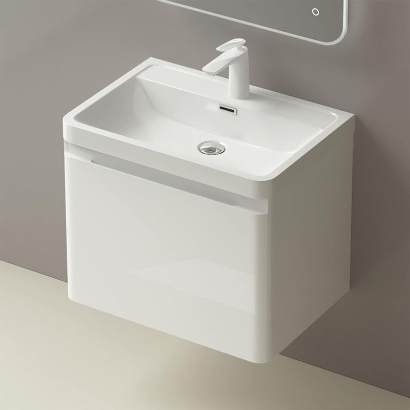 Das integrierte Waschbecken aus modernstem Mineralguss ist mit einem Hahnloch versehen und bietet sowohl erhöhte Widerstandsfähigkeit gegen Abnutzung als auch ein edles, gleichmäßiges Erscheinungsbild. Mit einer Breite von 60 cm bietet es ausreichend Platz für den täglichen Gebrauch, ohne Komfort oder Ästhetik zu beeinträchtigen.