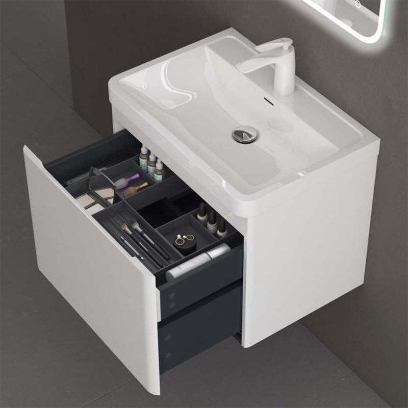 Gefertigt aus hochwertigen MDF-Platten, die speziell behandelt wurden, um Feuchtigkeit standzuhalten, eignet sich dieses Möbel ideal für jedes moderne Badezimmer, unabhängig von der Größe. Die hochglänzende weiße Oberfläche bringt zusätzliche Helligkeit und Stil und lässt sich problemlos in jede Einrichtung integrieren.