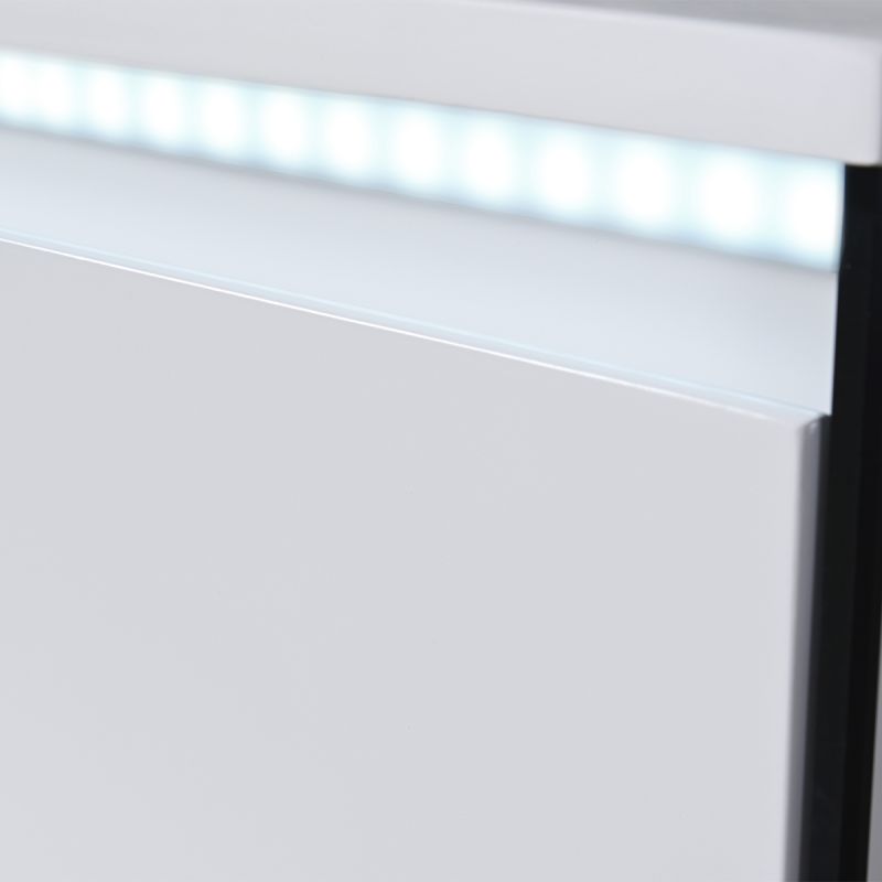 Das Möbel ist mit integrierter LED-Beleuchtung ausgestattet, die Eleganz und eine warme, entspannende Atmosphäre schafft. Das Soft-Close-System sorgt für ein sanftes, geräuschloses Schließen der Schubladen, eliminiert störende Geräusche und schützt die Mechanik langfristig.
