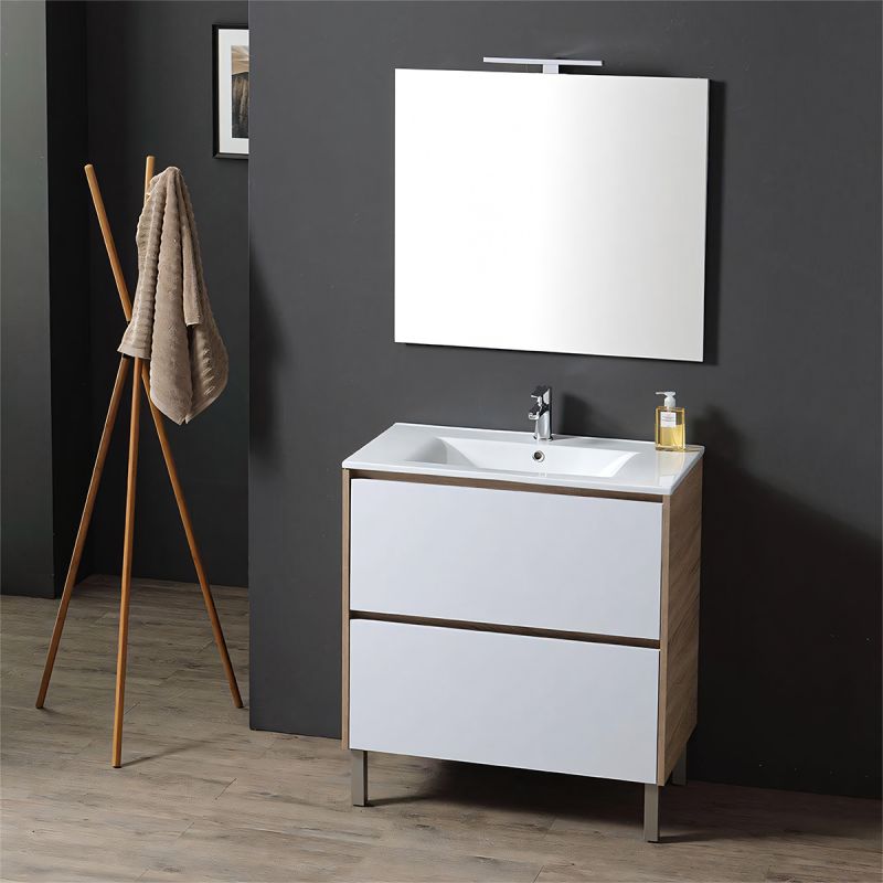 Das Set beinhaltet ein hochwertiges Waschbecken aus Sanitärkeramik – langlebig und widerstandsfähig gegen Flecken und Kratzer. Die glatte Oberfläche lässt sich leicht reinigen und das ergonomische Design sorgt für hohen Nutzungskomfort. Mit Armaturloch und Überlaufsystem ausgestattet, garantiert es eine sichere und effiziente Nutzung.