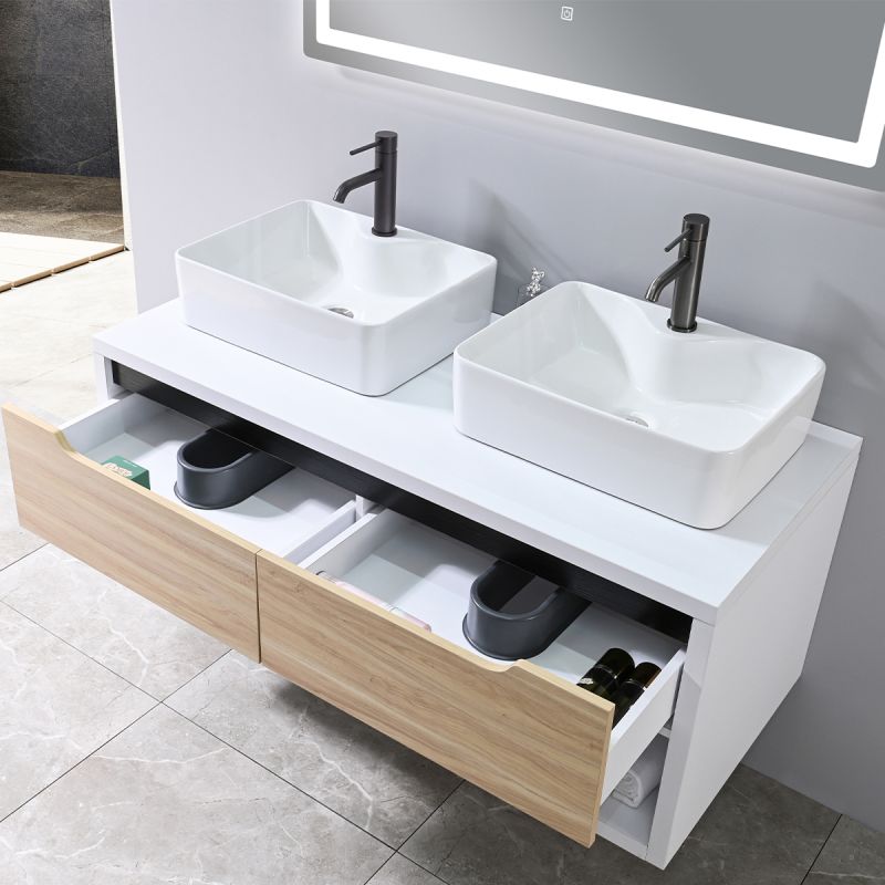 Das Möbel wird aus hochwertigem Schichtholz (Plywood) gefertigt, das durch das Verpressen mehrerer dünner Holzschichten bei hohen Temperaturen mit speziellen Klebstoffen hergestellt wird. Diese Struktur gewährleistet hohe Feuchtigkeitsresistenz sowie Stabilität gegen Verformung und Rissbildung, was es ideal für den Badezimmereinsatz macht. Im Gegensatz zu Spanplatte oder MDF bietet Plywood eine deutlich längere Lebensdauer und hervorragende Stabilität.