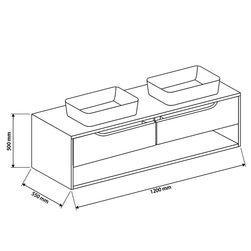 Mit zwei geräumigen Schubladen und einem offenen Fach bietet das Riviera 120x55 cm ausreichend Platz zur Aufbewahrung von Pflegeprodukten, Handtüchern und weiteren wichtigen Accessoires.