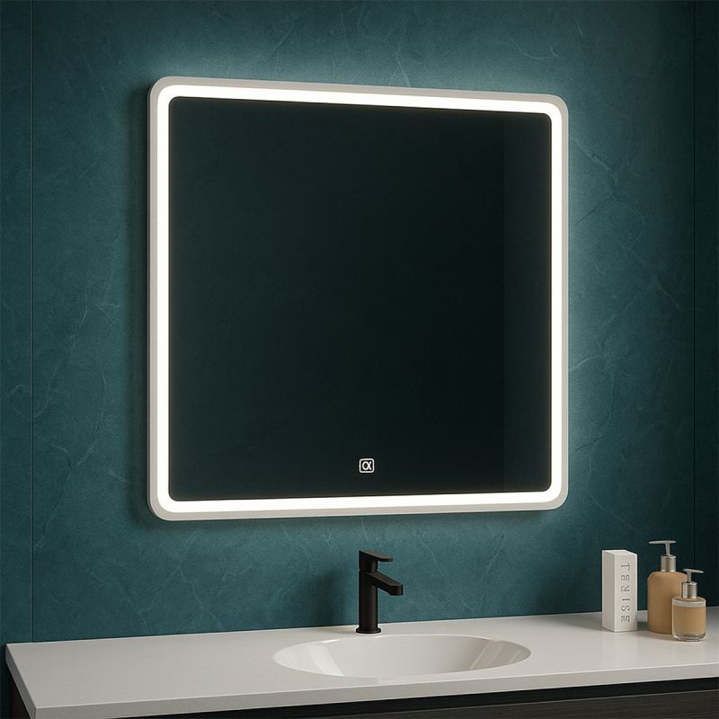 Smart-LED-Spiegel, 5 mm Glas, Anti-Beschlag, Touch-Taste, 3 Lichtfarben, Größe 90x90 cm, Nivo
