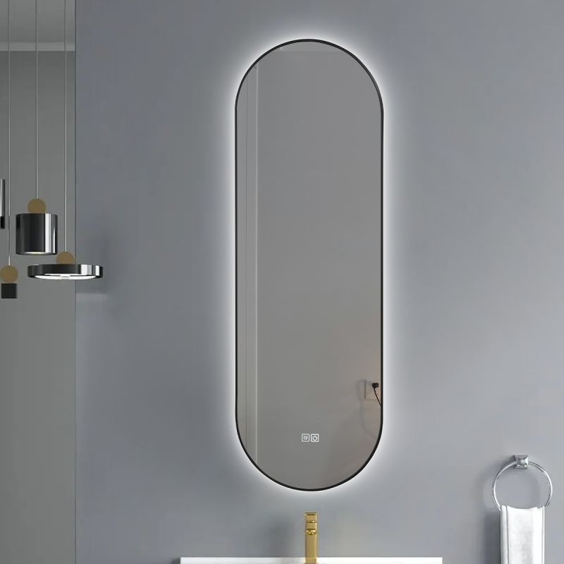 LED-Spiegel, Demister, Touch-Taste, schwarzer Rahmen, 3 Farben, einstellbare Intensität, Abmessungen 50x100-40x120 cm, Victoria