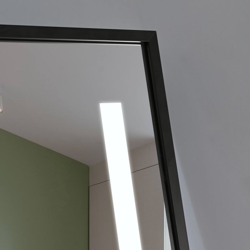 Der schwarze Aluminiumrahmen ist nicht nur ästhetisch ansprechend, sondern auch äußerst robust, bietet Schutz gegen Stöße und gewährleistet eine außergewöhnliche Korrosionsbeständigkeit. Mit der Schutzklasse IP44 ist der Spiegel bestens vor Spritzwasser und Feuchtigkeit geschützt, was ihn ideal für alle Räume macht – insbesondere auch für Badezimmer, in denen Feuchtigkeit andere Spiegel beeinträchtigen kann. Zudem garantiert der Spiegel mit einem CRI > 85 eine naturgetreue Farbwiedergabe, was für tägliche Aktivitäten wie das Auftragen von Make-up oder das Ankleiden für besondere Anlässe unerlässlich ist.