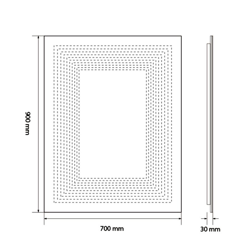3D-Spiegel mit RGB-LED und Fernbedienung, 5 mm Glas, Maße 70 x 90 cm, Infinity