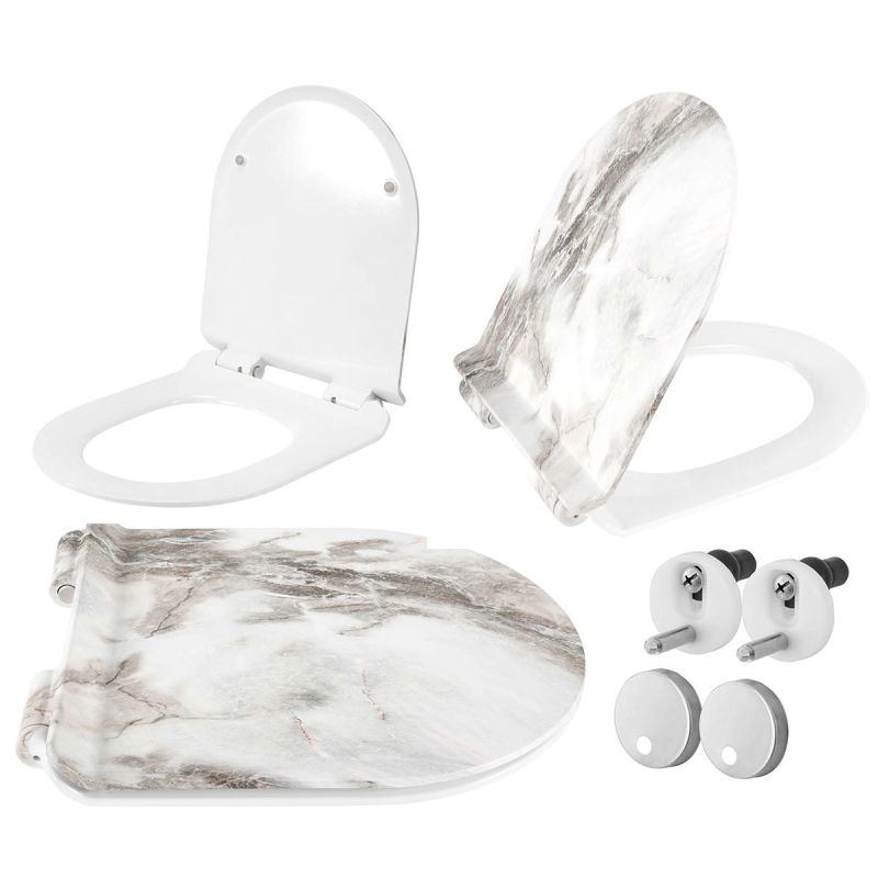 Mit einem Finish, das natürlichem Marmor ähnelt, verwandelt dieser Sitz jedes Badezimmer in einen raffinierten und stilvollen Raum. Die subtilen Farbtöne und der dezente Glanz schaffen einen außergewöhnlichen visuellen Effekt und verleihen dem Raum eine luxuriöse Note. Das schlanke Design mit einer Dicke von nur 3,5 cm bewahrt ein minimalistisches und modernes Profil.