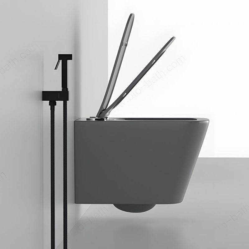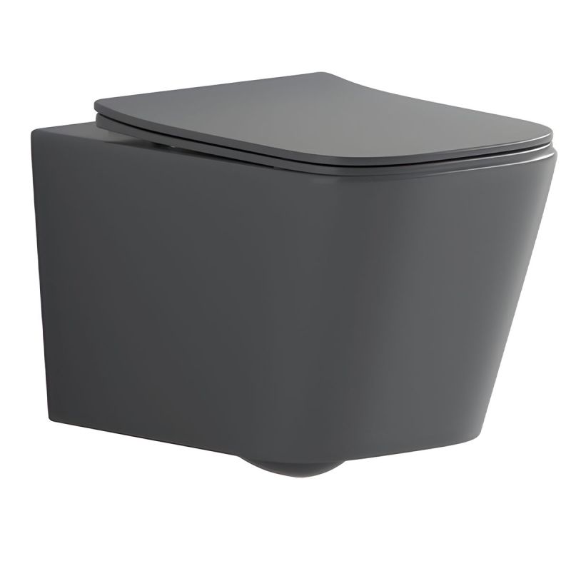 Toilettenschüssel, Rimless, Mattgrau, Power Colour, Wandmontage, inkl. Slim-Duroplast-Sitz mit Soft-Close, Alfonso