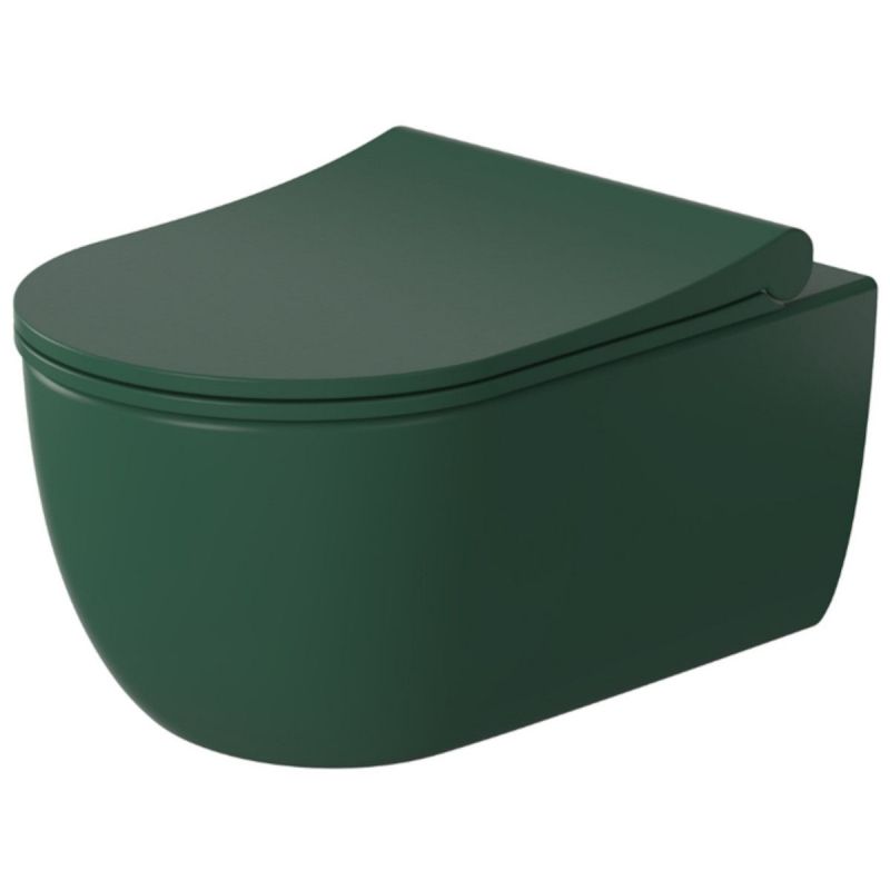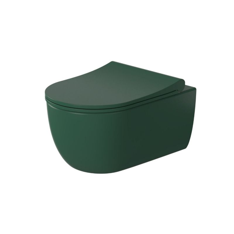 WC-Schüssel EGO Michael Rimless , 49x36 cm, Grün, Power Colour, halbmatt, hängende Montage, Duroplast-Soft-Close-Easy-Off-Deckel