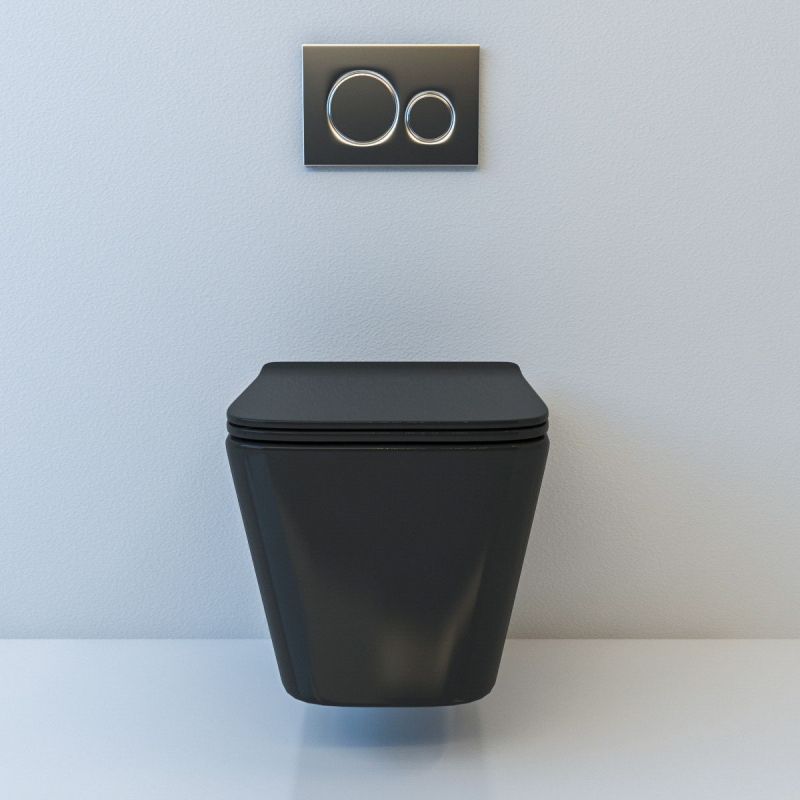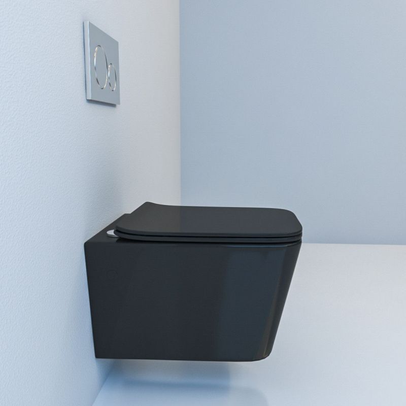 EGO Alfonso Rimless Toilettenschüssel, Mattschwarz, Power Color, hängende Montage, Duroplast Slim Soft-Close-Deckel inklusive