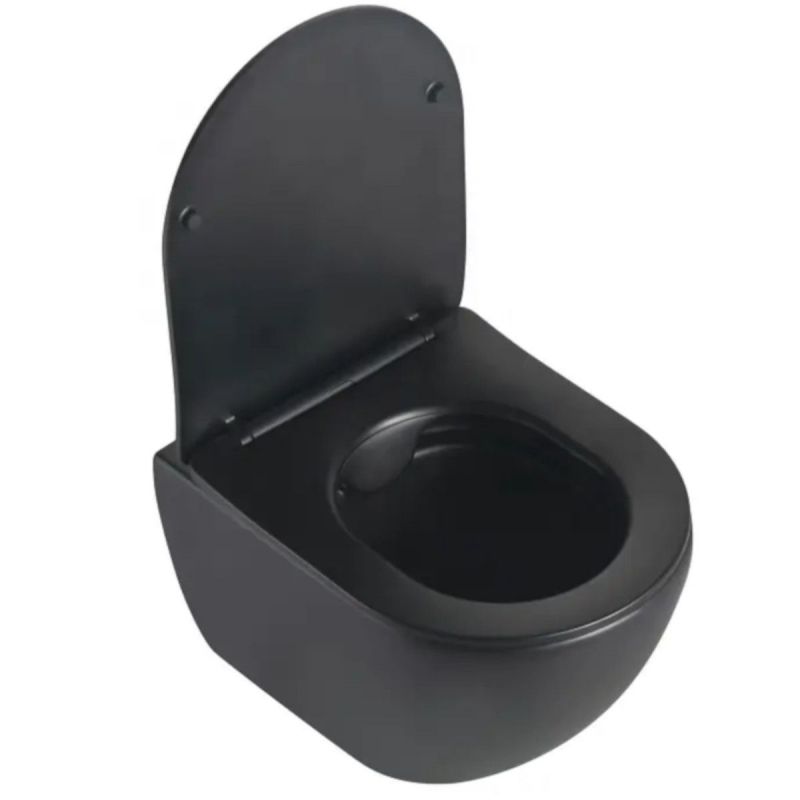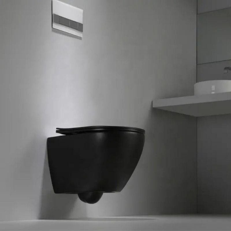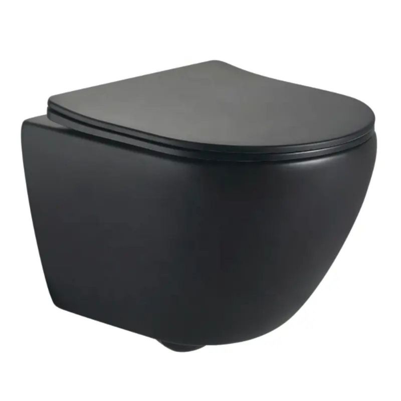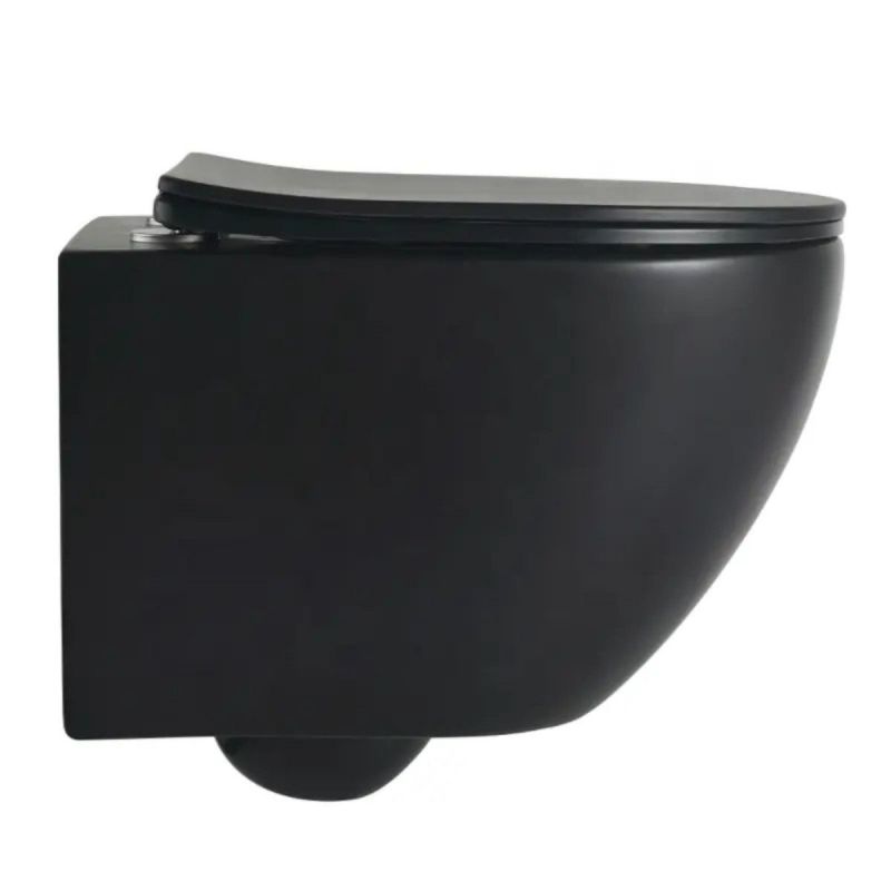 Wandhängendes WC, Mattschwarz, Power Color, Rimless, 49x36 cm, Duroplast-Deckel, Sanitärkeramik, Ben