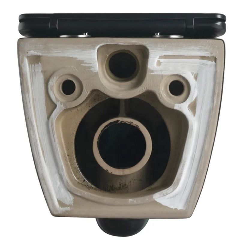 Toilettenschüssel mit mattschwarzem Duroplast-Abdeckung, die äußerst kratzfest ist.