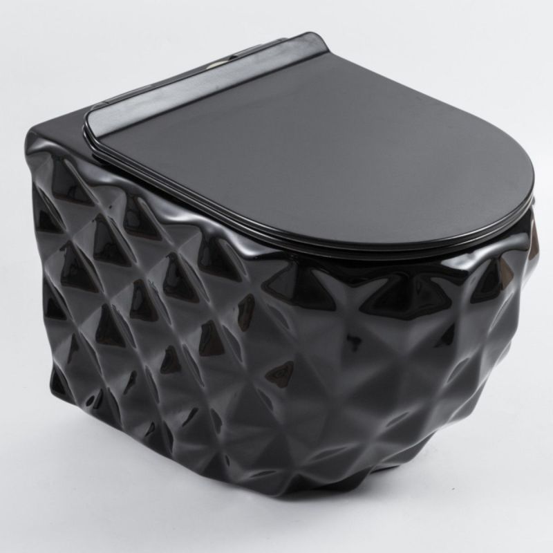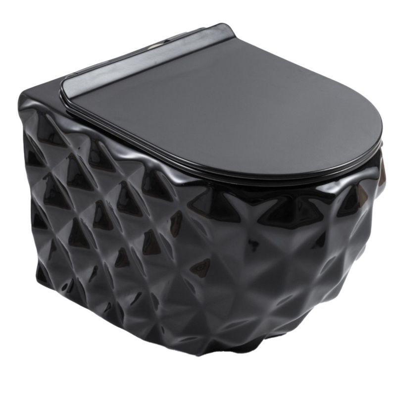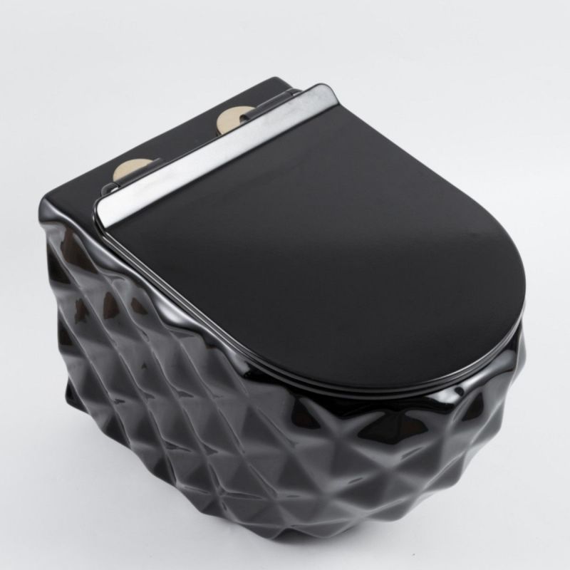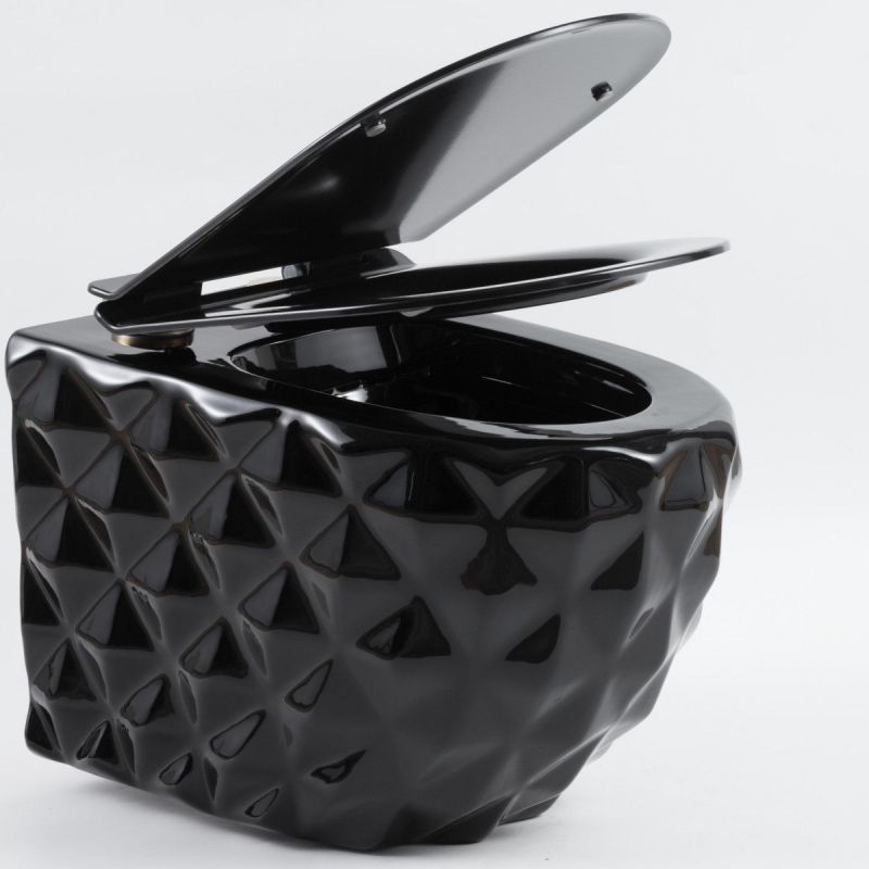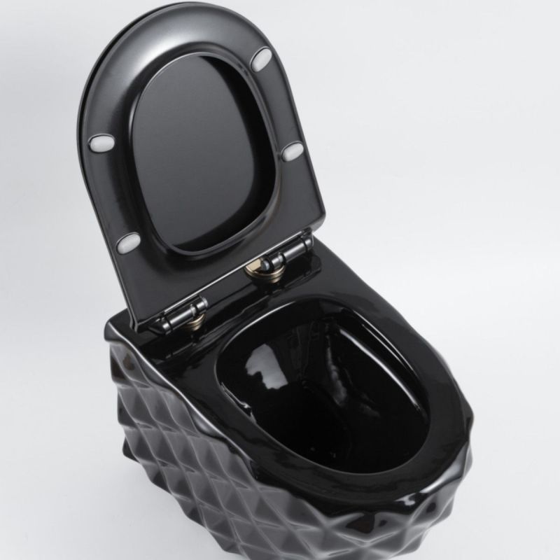 Toilettenschüssel mit glänzender, schwarzer Duroplast-Abdeckung, die äußerst kratzfest ist.