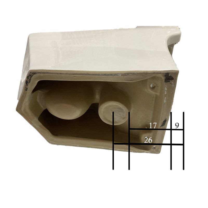 3 - im Boden - der Zugang erfolgt durch den Boden der Toilettenschüssel gemäß der Zeichnung, der Abfluss muss von einer befugten Person geöffnet werden, er ist sorgfältig geschnitten (Kernbohrung), um keine Schäden zu verursachen.