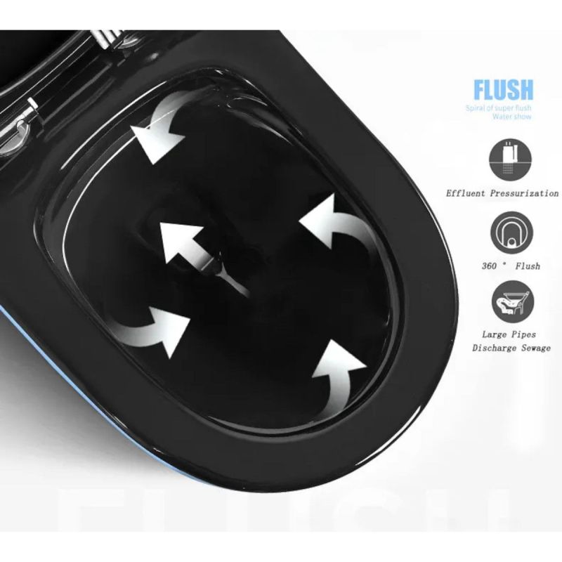 Die Lazio-Toilettenschüssel wird mit innovativer Technologie aus einem Stück gefertigt, wobei der Tank integriert ist. Dies verleiht dem Produkt ein modernes und minimalistisches Design.