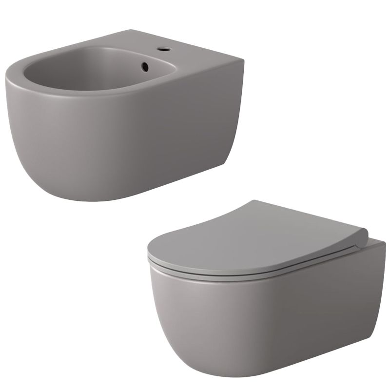 WC- und Bidet-Set, Grau, halbmatte Oberfläche, Power Color, hängende Montage, 49x36 cm, Michael-Kollektion