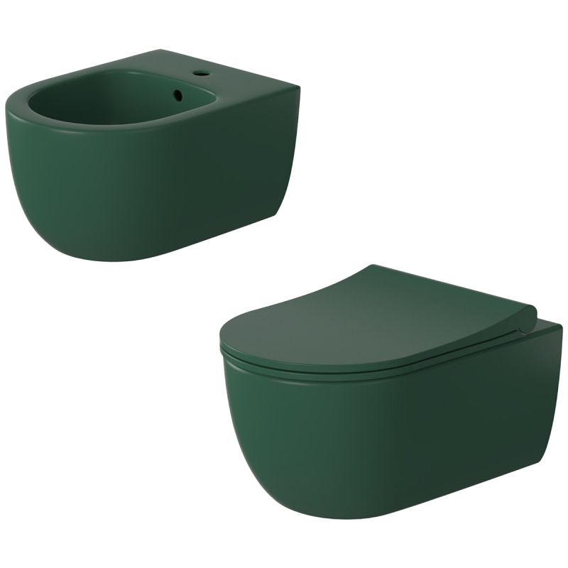 WC- und Bidet-Set, Grün, halbmatte Oberfläche, Power Color, hängende Montage, 49x36 cm, Michael-Kollektion