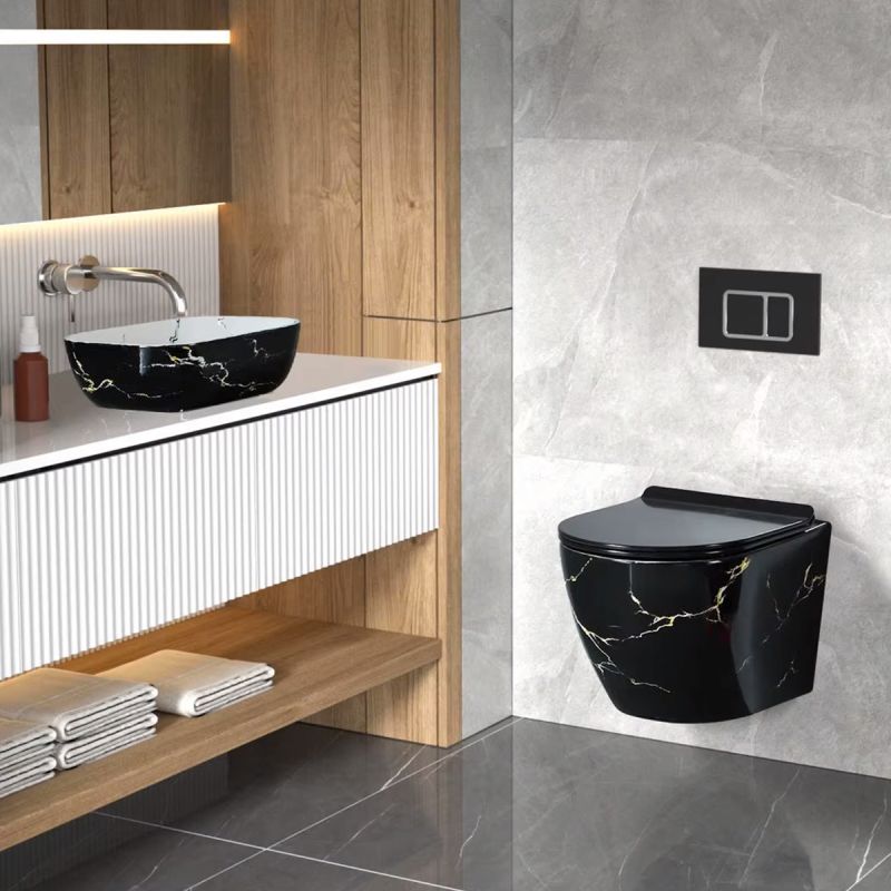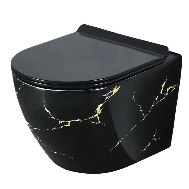 Das WC Ben besticht durch sein edles Schwarz-Gold-Marmor-Finish, das durch aufwendige goldene Elektroplattierung veredelt wurde. Dieses luxuriöse Detail macht es zur perfekten Wahl für stilvolle, anspruchsvolle Badezimmer.