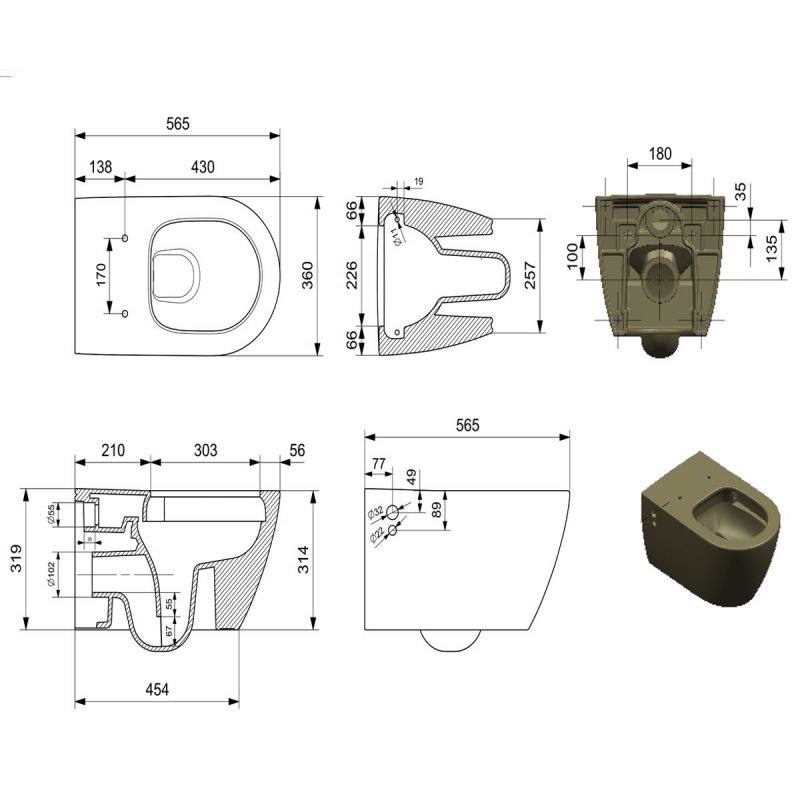 Die Schüssel kann auf einem in die Wand eingebauten Rahmen montiert werden. Sie besteht aus hochwertiger Sanitärkeramik und ist dank eines speziellen Produktionsschritts besonders langlebig und leicht zu reinigen.