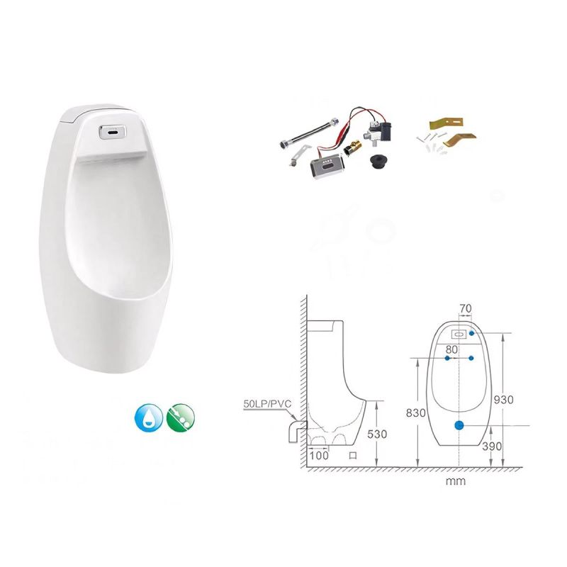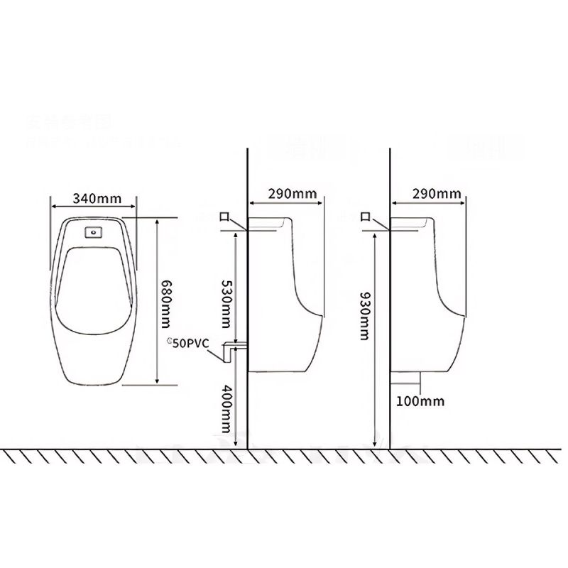 - Kompakte Maße bei maximaler Funktionalität: Die geringe Stellfläche macht das Urinal ideal für kleinere Bäder, in denen Platzoptimierung essenziell ist, ohne den Komfort zu beeinträchtigen.