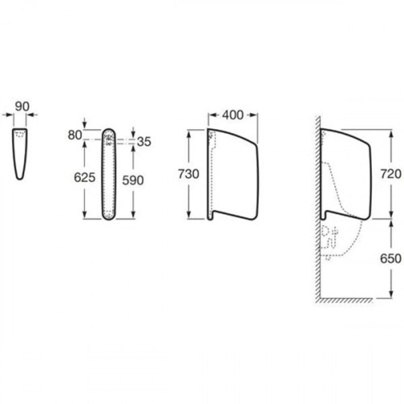 Trennwand für Urinale, Sanitärkeramik, Schwarz Matt, 72x40x9 cm, Privado