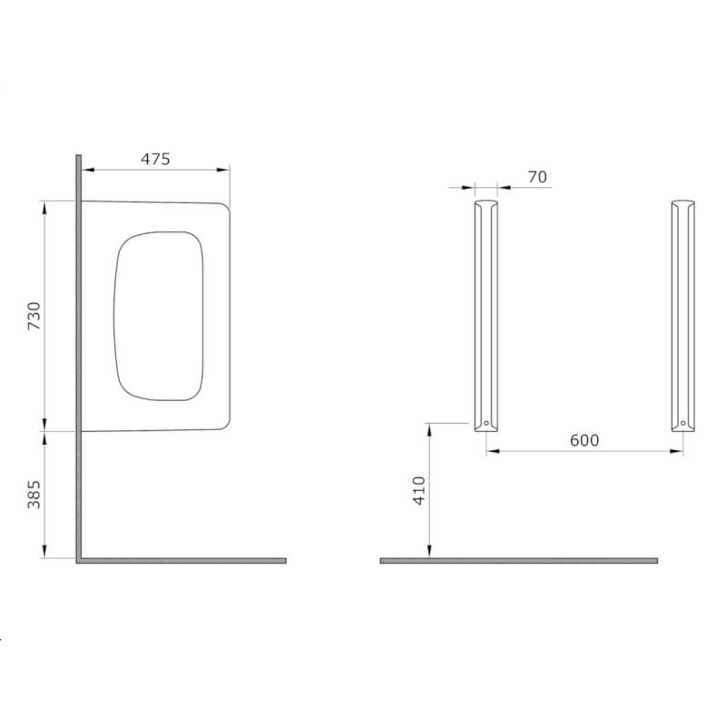 Separator, Trennwand für Urinale Robi, Sanitärkeramik, Mattschwarz, 73 x 47,5 cm