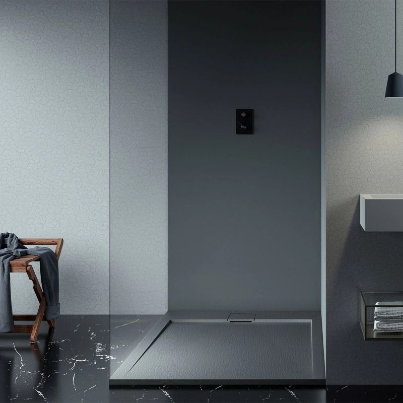 Die Duschpaneele in Anthrazit sind darauf ausgelegt, ein vollständiges und individuell gestaltetes Erscheinungsbild in Ihrem Badezimmer zu bieten. Dank der einheitlichen Farbe und der Schieferstruktur können Sie einen harmonischen Duschbereich kreieren, der Ihren persönlichen Stil widerspiegelt. Das zeitgenössische Design und die hochwertige Materialqualität garantieren ein raffiniertes Aussehen, das perfekt in jedes moderne Badezimmer passt.