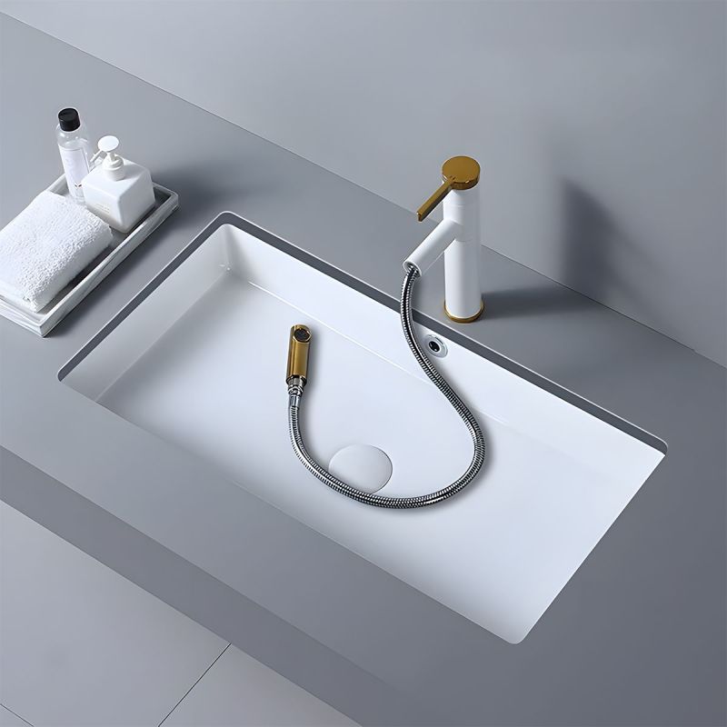 Waschbecken, Glänzend Weiß, Unterbau-Montage, ohne Hahnloch, 70–80x42 cm, Sanitärkeramik, Livia