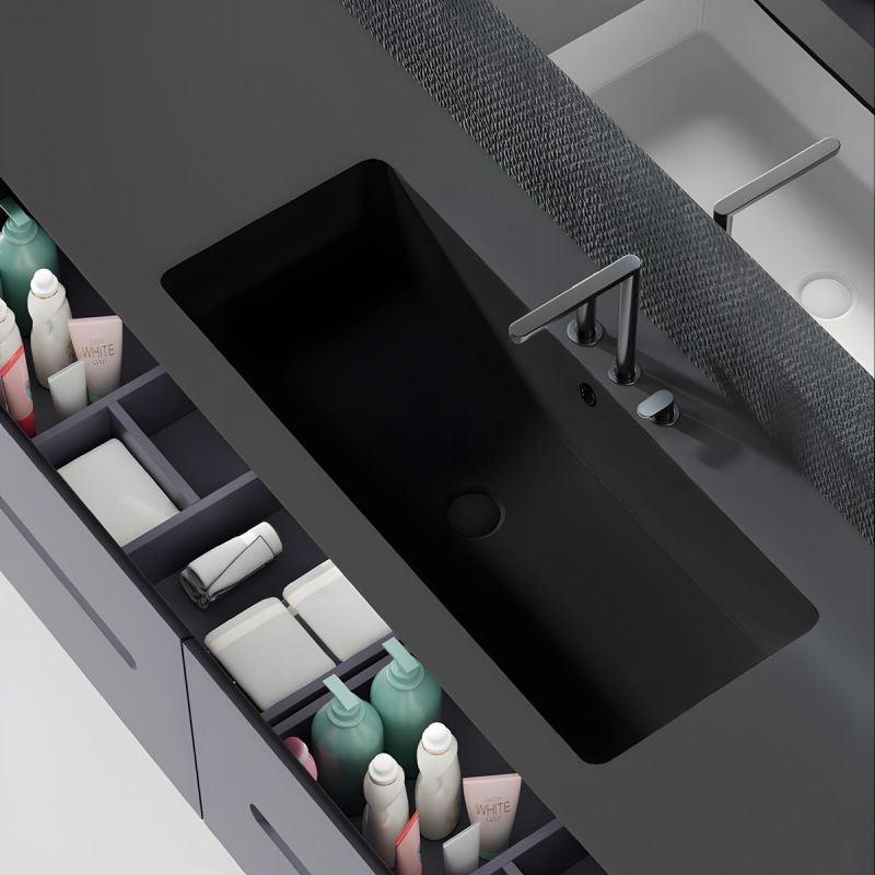 Waschbecken, Mattschwarz, Power Colour, Unterbau-Montage, 70-80x42 cm, Sanitärkeramik, Livia