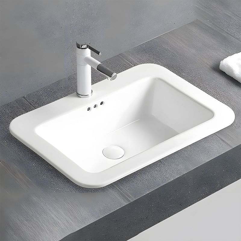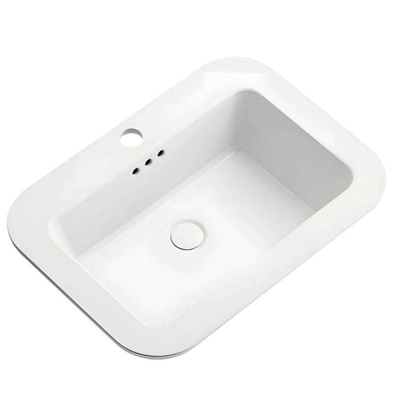 Waschbecken, Glänzend Weiß, Halb-Einbaumontage, mit Hahnloch, Sanitärkeramik, 60x44 cm, Monza