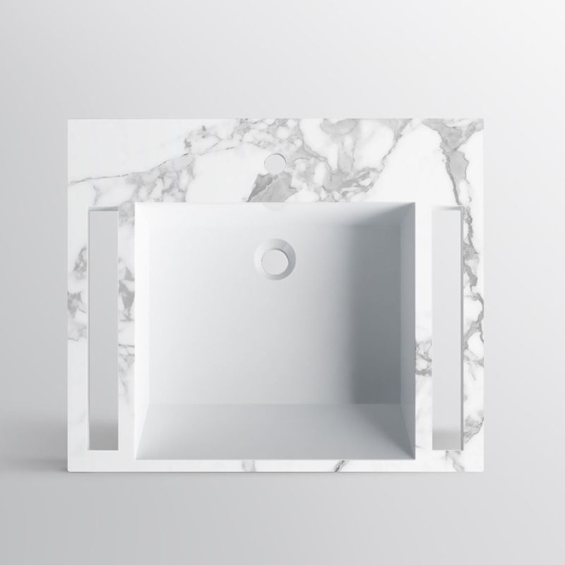 Das Carrara Arabescato-Finish ist von der natürlichen Schönheit edler Steine inspiriert und besticht durch feine, silbergraue Maserungen auf einem glänzend weißen Hintergrund. Dieses Marmordesign verleiht dem Waschbecken eine klassische Eleganz mit moderner Note – perfekt für anspruchsvolle Badgestaltungen. Die Gelcoat-Schutzschicht verstärkt die Widerstandsfähigkeit, sorgt für eine angenehme Haptik und schützt die Oberfläche vor täglicher Abnutzung.