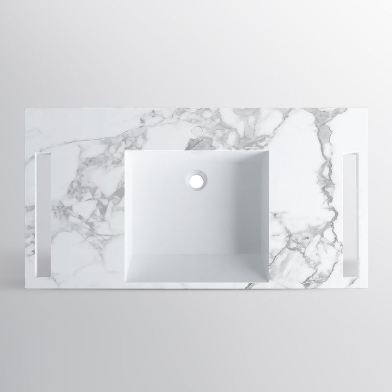 Mit einer Breite von 105 cm und einer Tiefe von 55 cm bietet das Lavanda-Waschbecken eine großzügige Nutzfläche, ideal für Familien oder stark frequentierte Badezimmer. Das ausgewogene Design mit eleganten Kanten und klaren Linien lässt sich problemlos in verschiedene ästhetische Konzepte integrieren und bewahrt zugleich einen luftigen und ordentlichen Gesamteindruck.