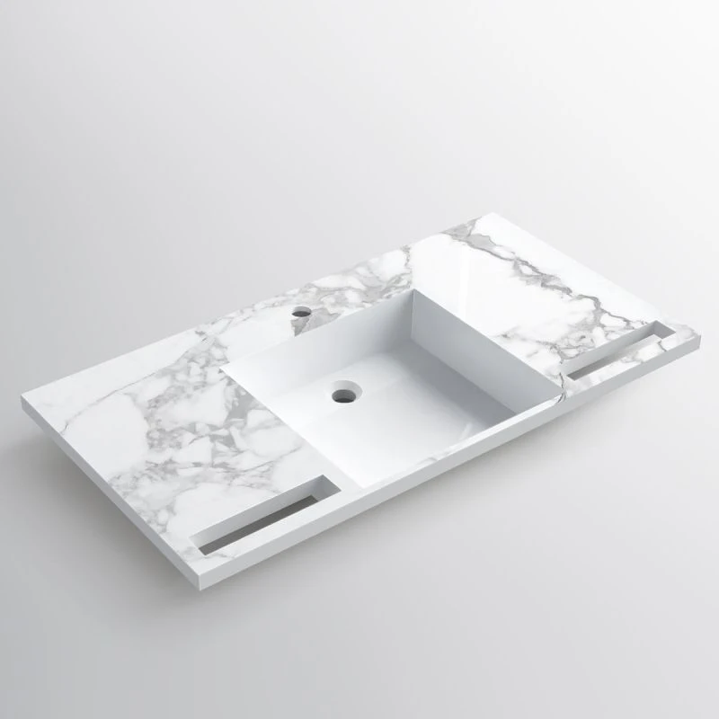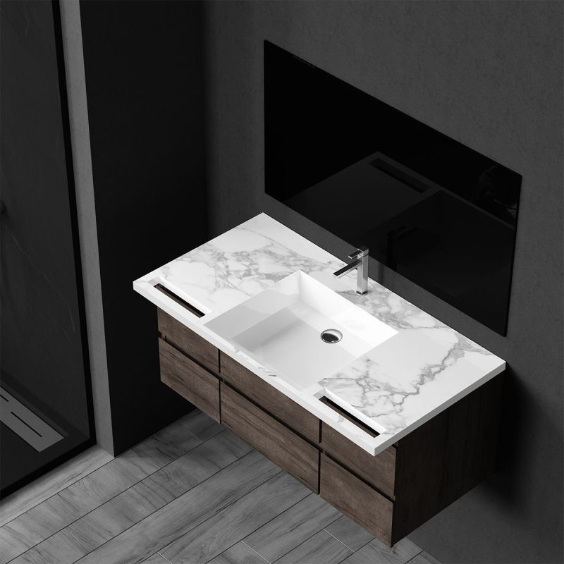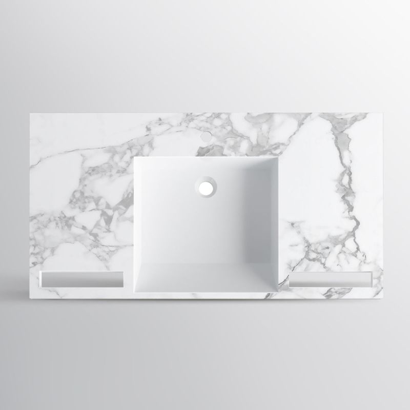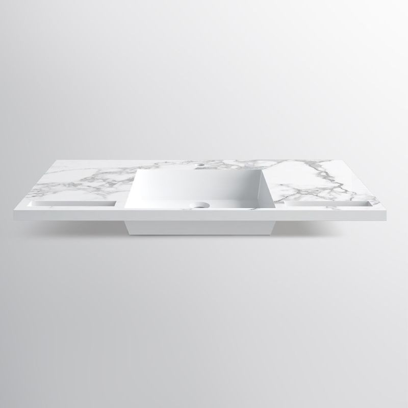 Definieren Sie die Standards für Ästhetik und Vielseitigkeit in Ihrem Bad neu mit dem Waschbecken Fuente von Ego Interiors, erhältlich in den Größen 105 und 125 cm mit einer Tiefe von 55 cm – perfekt für zeitgenössische Räume, die elegantes Design und funktionale Lösungen schätzen. Gefertigt aus hochwertigem Mineralverbundstoff und veredelt mit dem edlen Carrara Arabescato-Muster, vereint dieses Waschbecken Robustheit mit visueller Raffinesse.